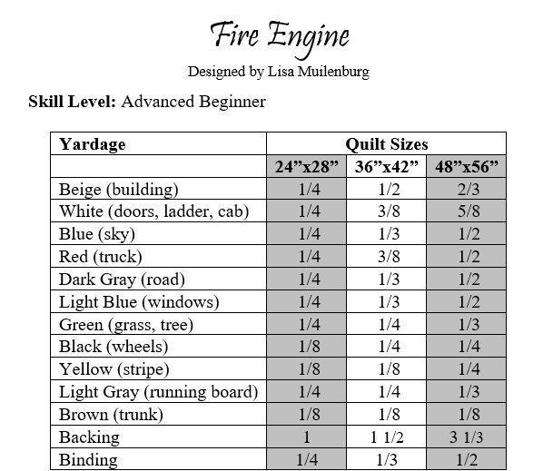 Fire Engine Quilt Pattern 3 Sizes Pdf